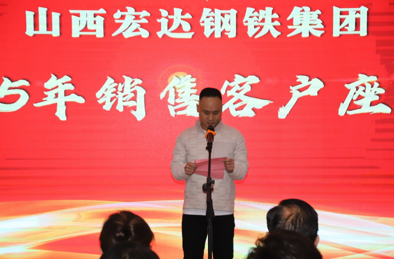 集團董事長張會民在答謝晚宴講話中指出,去年以來,宏達集團在各位銷售客戶的大力支持下,沉著應(yīng)對市場低迷的嚴峻挑戰(zhàn),優(yōu)化結(jié)構(gòu)豐產(chǎn)品,奮勇開拓創(chuàng)營銷,生產(chǎn)和銷售均取得積極成效。目前宏達集團出品的各種規(guī)格產(chǎn)品遠銷全國各地市場,特別是盤螺在山西、陜西、河南區(qū)域市場成為當(dāng)之無愧的明星產(chǎn)品、網(wǎng)紅產(chǎn)品,與在座各位銷售客戶代表的大力支持與傾情推廣是分不開的。近年來,面對房地產(chǎn)市場萎縮、建材用量持續(xù)減少的狀況,宏達集團及早籌謀,全面完成裝備改造升級,成功開發(fā)Q195、30MnSi、45#等品種鋼,并實現(xiàn)規(guī)模生產(chǎn)與試銷,應(yīng)用前景廣闊,市場反響良好。同時借助寶武集團強大的技術(shù)支持,公司上馬KR、LF、LFV、RH等國內(nèi)及國際尖端的設(shè)備,合作建設(shè)國內(nèi)首條擁有完全自主知識產(chǎn)權(quán)的薄帶鑄軋生產(chǎn)線,實現(xiàn)我國冶金領(lǐng)域鑄軋一體化技術(shù)質(zhì)的突破。項目投產(chǎn)后,將生產(chǎn)熱軋?zhí)妓劁?、高強度鋼板等,可廣泛應(yīng)用于新能源汽車電機磁芯材料、風(fēng)力發(fā)電機定子轉(zhuǎn)子、變壓器鐵芯等領(lǐng)域。2025年,宏達集團將在保證原有線材與盤螺等明星產(chǎn)品的基礎(chǔ)上,穩(wěn)步增加品種鋼的產(chǎn)量,持續(xù)進行特種鋼的研發(fā)。新的一年里,作為利益同享、風(fēng)雨同舟的一家人,我們合作發(fā)展的基礎(chǔ)將更為牢固、我們并肩前行的道路將更為寬廣,宏達集團將與廣大銷售客戶代表們心往一處想,勁往一處使,通過優(yōu)化銷售政策、共同開拓新興市場,在全面建設(shè)全國一流現(xiàn)代化鋼鐵企業(yè)的宏偉征程上共同贏取輝煌的未來。